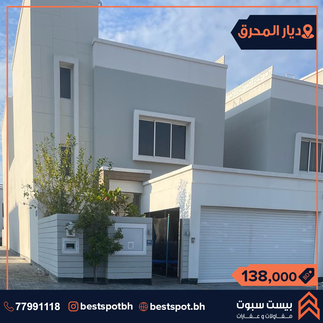 للبيع فيلا مفروشة على زاوية في موقع مميز في منطقة ديار المحرق تتكون الفيلا من : صالتين 3 غرف نوم 5 حمامات مطبخين مجلس غرفة خادمة غرفة غسيل كراج لسيارتين حوش مخزن الفيلا مكيفة بالكامل مساحة الارض 185.0 متر مربع مساحة البناء 265.0 متر مربع السعر 138.0 الف دينار قابل للتفاوض Ref No. SVBS079 للإستفسار والتواصل : 38991113 38991112 للمزيد من العقارات: @bestspotbh @bah_property #Bestspotbh_Villas #bahrain_property #bahrainrealestate #عقارات_البحرين #فلل