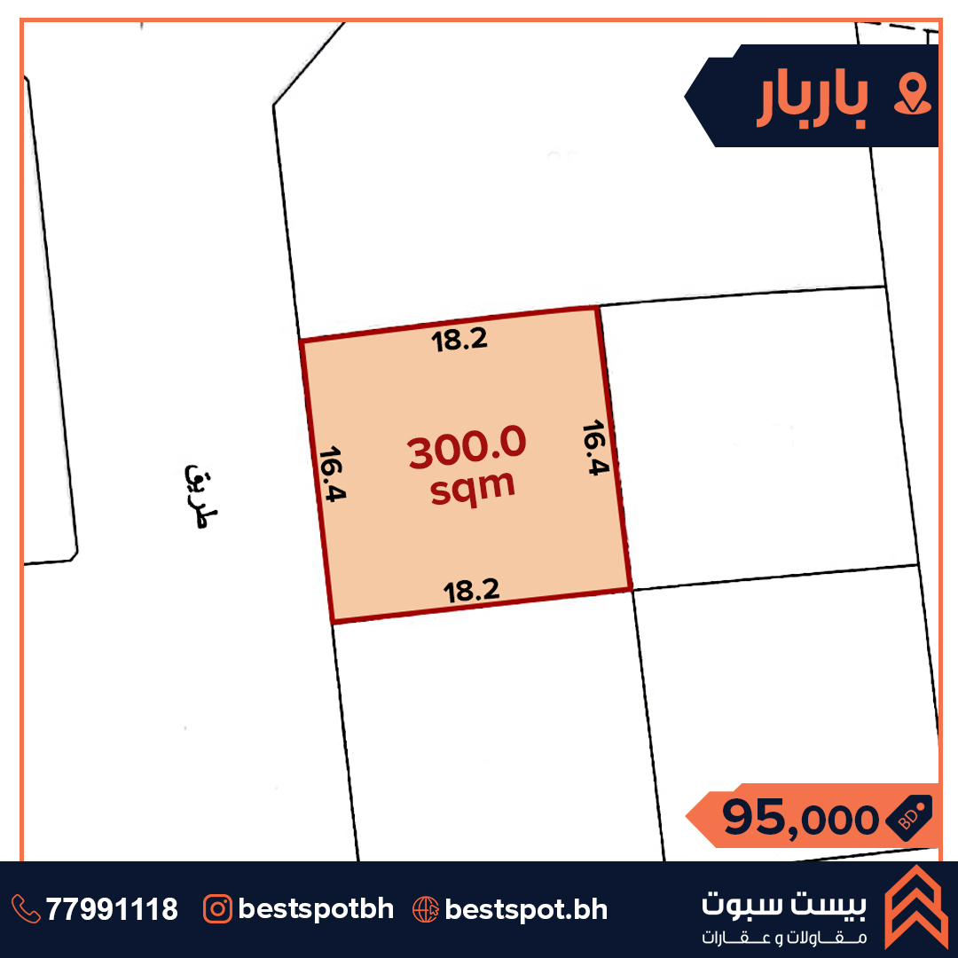 للبيع ارض في موقع مميز في منطقة باربار مساحة الارض 300.0 متر مربع سعر القدم 29.5 دينار السعر الإجمالي 95.0 الف دينار التصنيف سكني خاص RA Ref No. SLAH0173 للإستفسار والتواصل : 38991113 الحساب الرسمي: @Bestspotbh الحساب العقاري : @Bah_property #Bestspotbh_Lands #bahrain_property #bahrainrealestate #عقارات_البحرين #اراضي #باربار