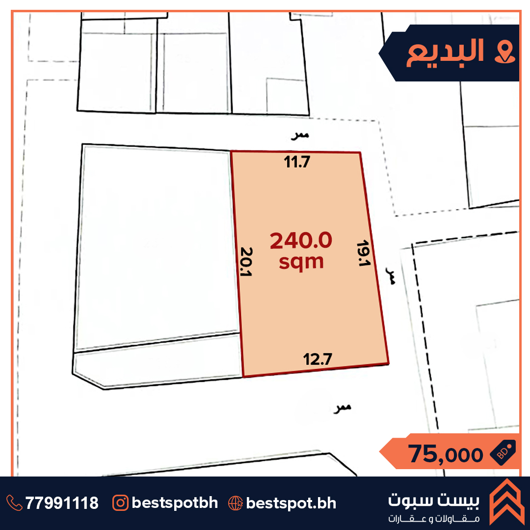 للبيع ارض سكنية في البديع* - المساحة : 380 متر - التصنيف : سكني RB - سعر القدم : 25 دينار *السعر الاجمالي : 103 الف دينار* كود A264