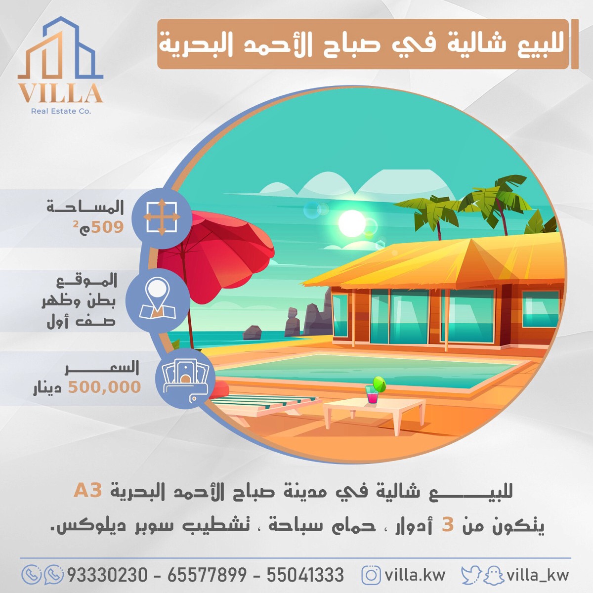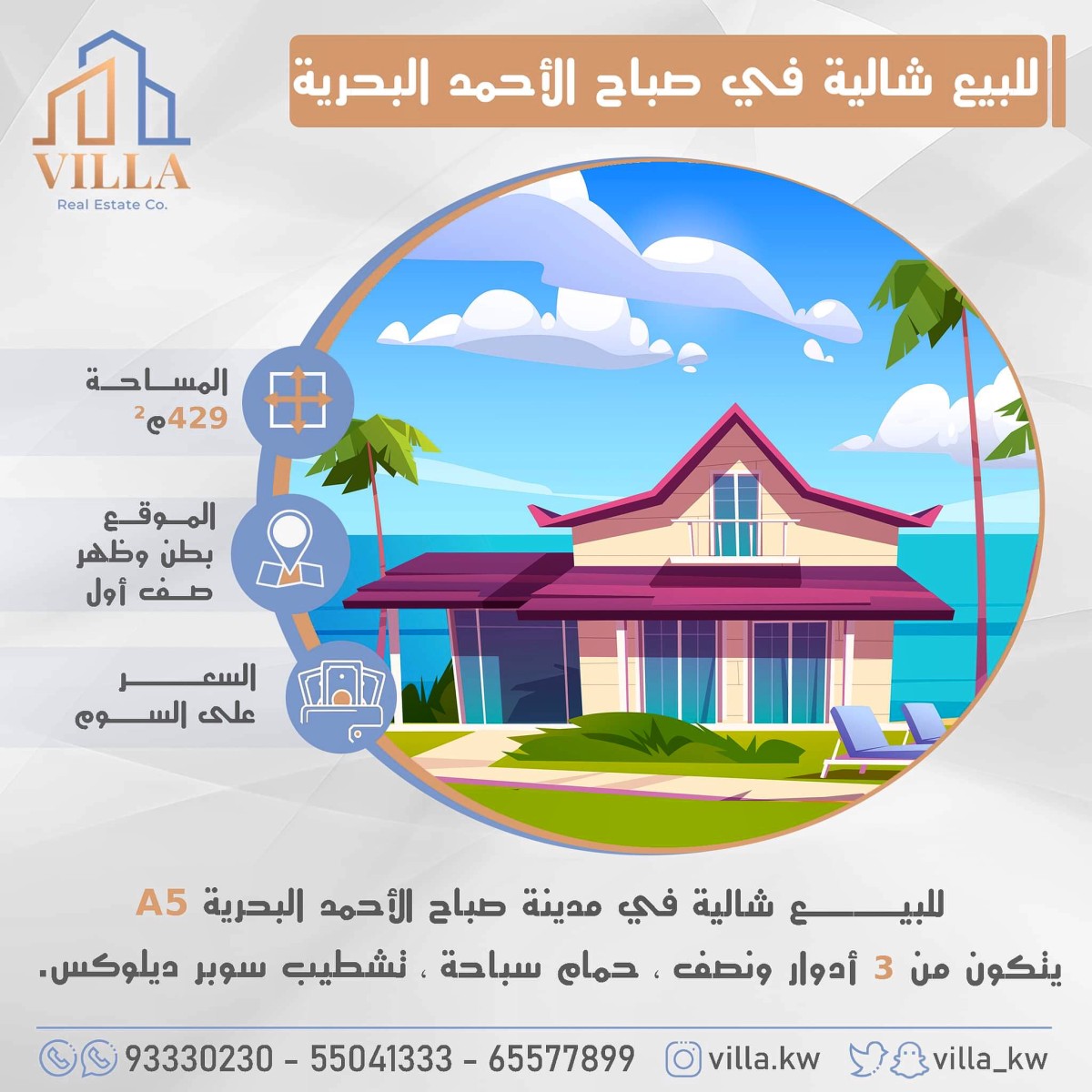 للبيعللبيع شالية في مدينة صباح الاحمد البحرية
