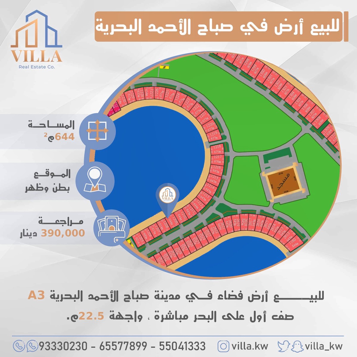 للبيعللبيع قسيمه في صباح الاحمد تشطيب سوبر ديلوكس