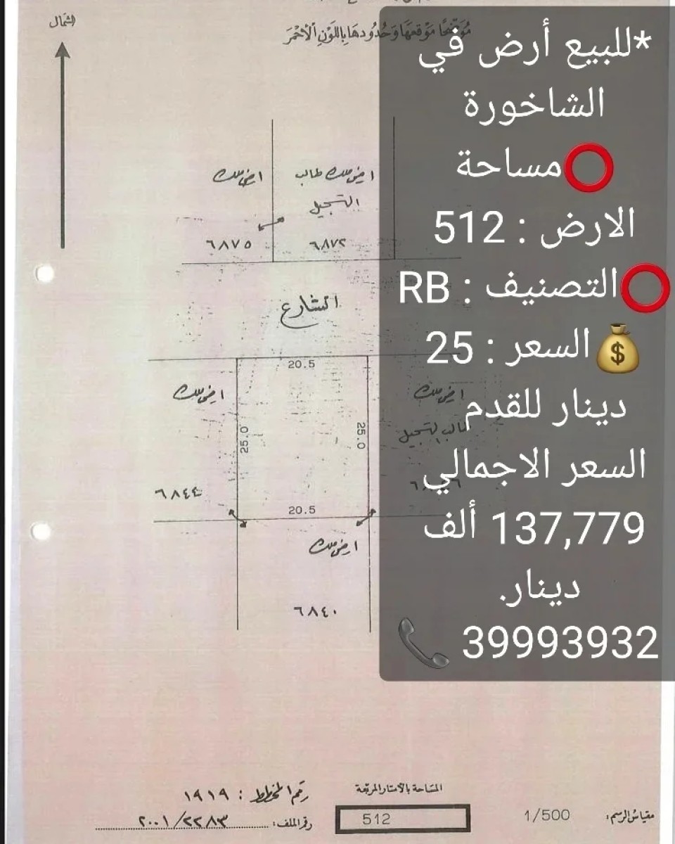 *للبيع أرض في الشاخورة ⭕️مساحة الارض : 512 ⭕️التصنيف : RB ?السعر : 25 دينار للقدم السعر الاجمالي 137,779 ألف دينار. ? 39993932 عبدالفتاح حسن مسار المستقبل للعقارات مطلوب جميع العقارات من المالك مباشرة. https://instagram.com/masar.bh?igshid=MGU3ZTQzNzY=