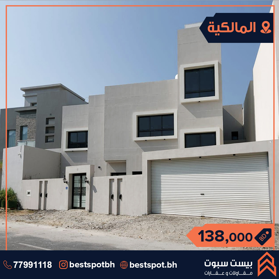 للبيع فيلا في موقع مميز في منطقة المالكية تتكون الفيلا من : صالة 4 غرف نوم 4 حمامات مطبخ كبير كما تتحتوي الفيلا على : منطقة غسيل حديقة كراج لسيارتين مساحة الأرض 229.0 متر مربع. مساحة البناء 269.0 متر مربع السعر 138.0 ألف دينار قابل للتفاوض Ref No. SVBS0108 للإستفسار والتواصل : 38991112 38991114 الحساب الرسمي: @Bestspotbh الحساب العقاري : @Bah_property #Bestspotbh_Villas #bahrain_property #bahrainrealestate #عقارات_البحرين #فلل #المالكية #للبيع