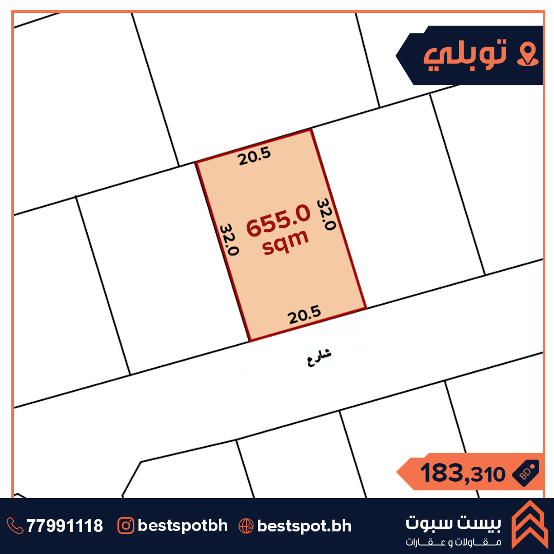 للبيع ارض في موقع مميز بالقرب من أسواق الحلي في منطقة توبلي مساحة الأرض 655.0 متر مربع سعر القدم 26 دينار السعر الإجمالي 183.3 ألف دينار التصنيف سكني / استثماري RB Ref No. SLBS0107 للإستفسار والمعاينة: 38991112 38991114 الحساب الرسمي: @Bestspotbh الحساب العقاري : @Bah_property #Bestspotbh_lands #bahrain_property #bahrainrealestate #property #lands #tubli عقارات_البحرين #اراضي #توبلي