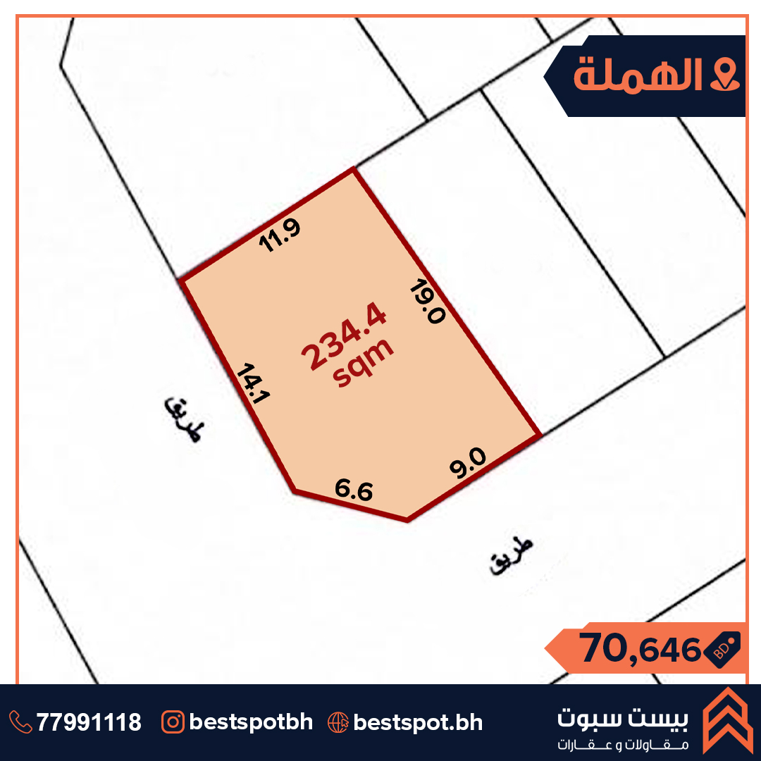 للبيع أرض سكنية في منطقة مميزة في قرية الهملة مساحة الأرض 234.4 متر مربع. سعر القدم 28 دينار السعر الإجمالي 70.6 ألف دينار التصنيف سكني RHA Ref No. SLAH0188 للإستفسار والمعاينة: 38991113 الحساب الرسمي: @Bestspotbh الحساب العقاري : @Bah_property #Bestspotbh_Lands #عقارات_البحرين #اراضي #الهملة #البحرين
