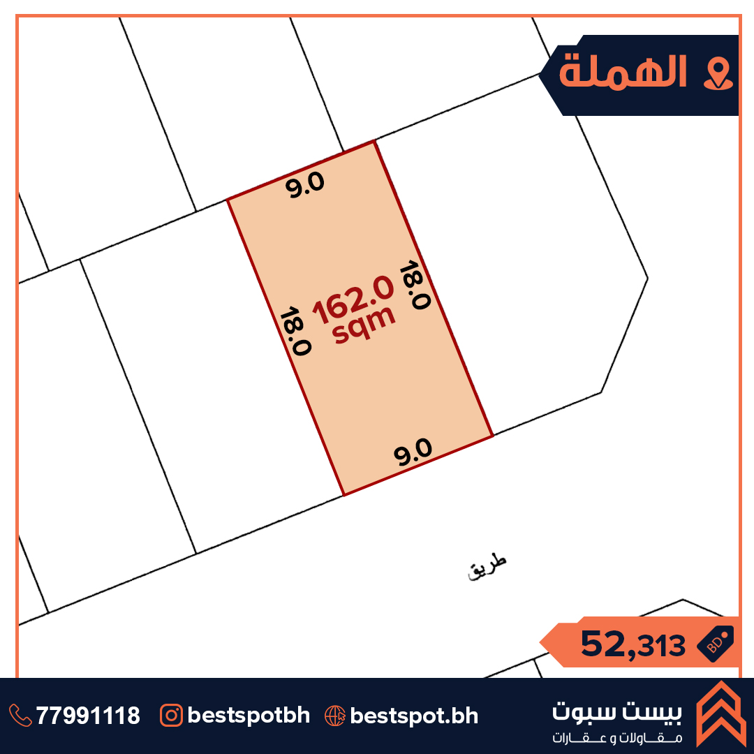 أرض للبيع في موقع هادئ في منطقة الهملة مساحة الأرض 162.0 متر مربع سعر القدم 30.0 دينار فقط السعر الاجمالي 52.3 ألف دينار التصنيف سكني متصل RHA Ref No. SLAH0195 للإستفسار والمعاينة: 38991113 الحساب الرسمي: @Bestspotbh الحساب العقاري : @Bah_property #Bestspotbh_Lands #عقارات_البحرين #اراضي #مزايا #الجنبية #سار #للبيع #تسهيل #فلل #شقق #عقارات