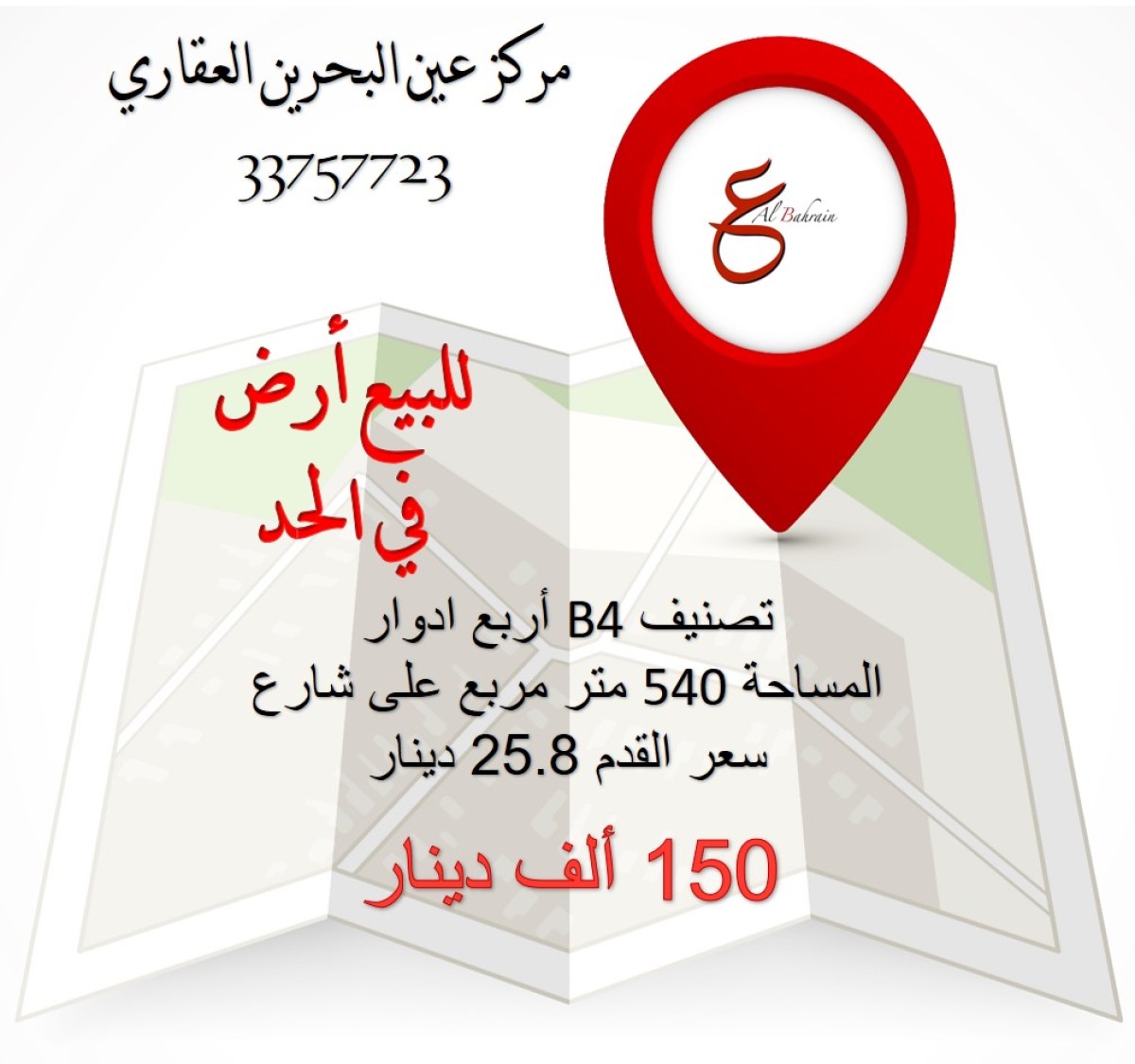للبيع شقق تمليك نظام عربي في الحد الجديد المساحة ٢٥٠ متر مكونة مجلس ٤غرف ٤حمامات صاله ومطبخ ٤ بلكون مصعد ٢ موقف سياره سعر البيع ٧٧ الف للتواصل مركز عين البحرين العقاري (وكيل مبيعات مرخص من قبل مؤسسة التنظيم العقاري) رخصه رقم (SA201803/0013) تلفون (34175099)