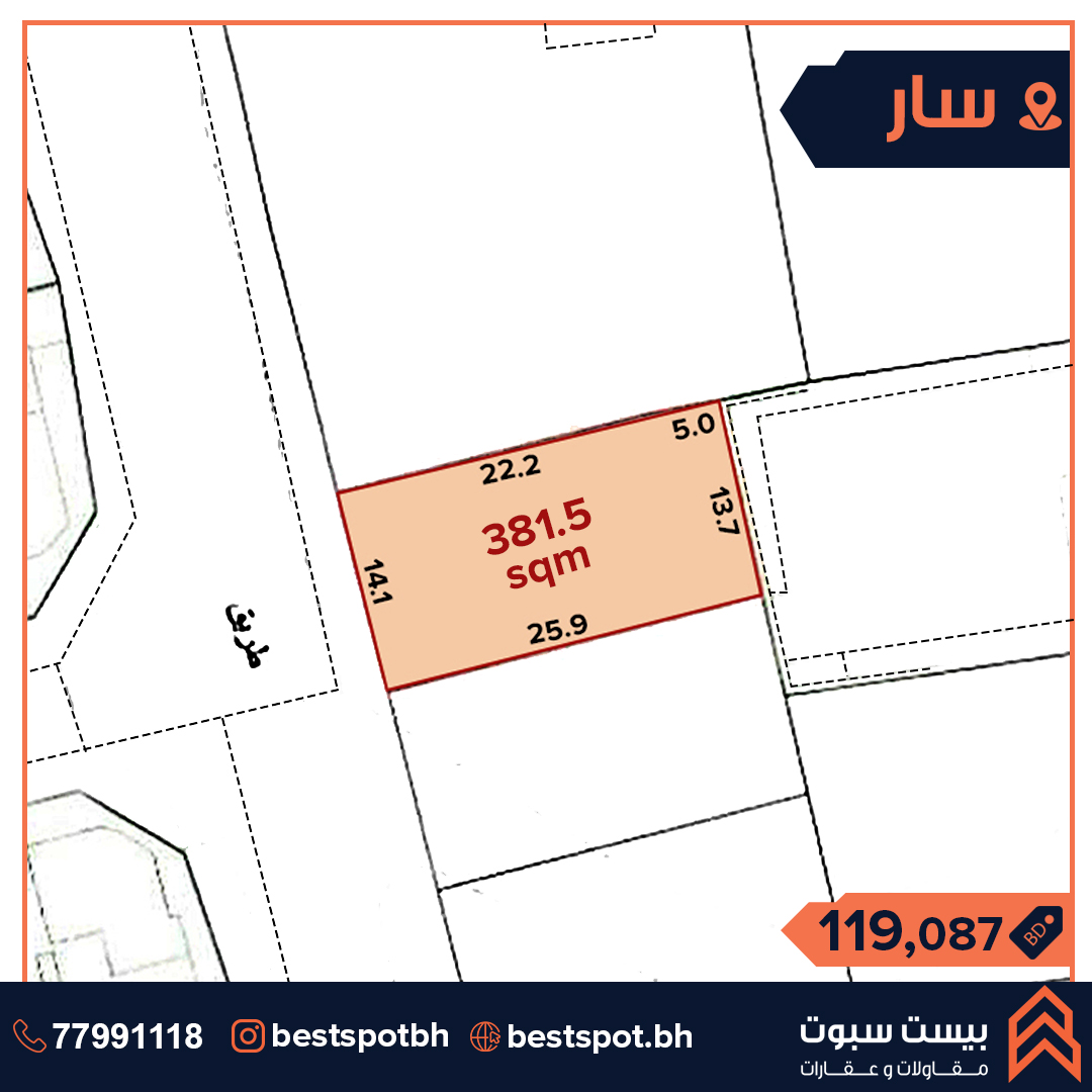 للبيع أرض سكنية في موقع مميز بالقرب من مطعم كرامي في منطقة سار الأرض محفورة ومدفونة إجازة بناء جاهزة (بالإمكان التعديل عليها). مساحة الارض 381.5 متر مربع سعر القدم 29 دينار قابل للتفاوض السعر الاجمالي 119.0 ألف دينار التصنيف سكني RB Ref No. SLAH0159 للإستفسار والتواصل : 38991113 للمزيد من العقارات: @bestspotbh @bah_property #Bestspotbh_lands #bahrain_property #bahrainrealestate #عقارات_البحرين #اراضي