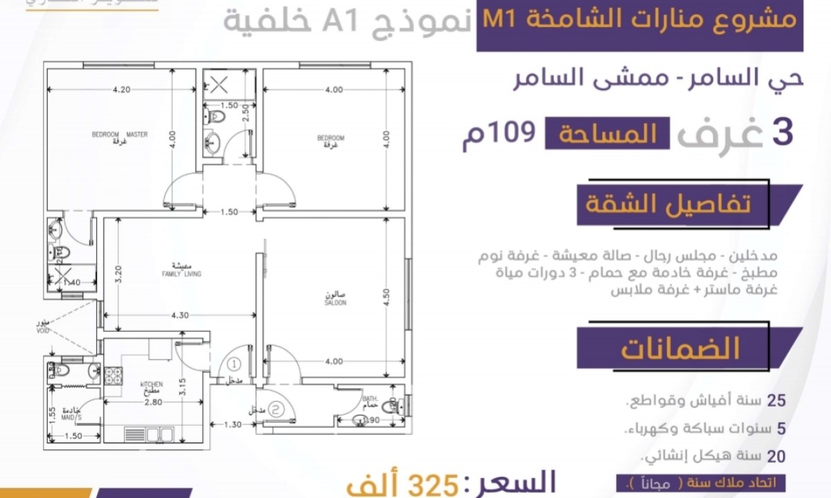 شقق تحت الإنشاء ٤ غرف مساحه ١٤٣ م سعر ٣٨٥ الف كاش ٣ غرف مساحه ١٠٩ م سعر ٣٢٥ الف كاش حي السامر ممشى السامر