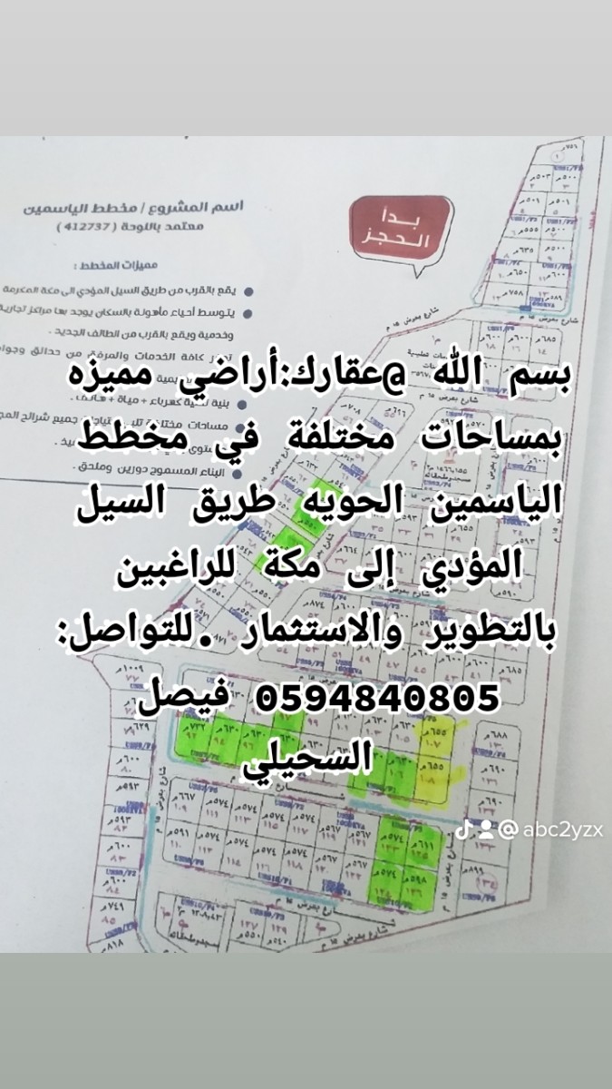 اراضي مميزة للبيع مخطط الياسمين الحوية